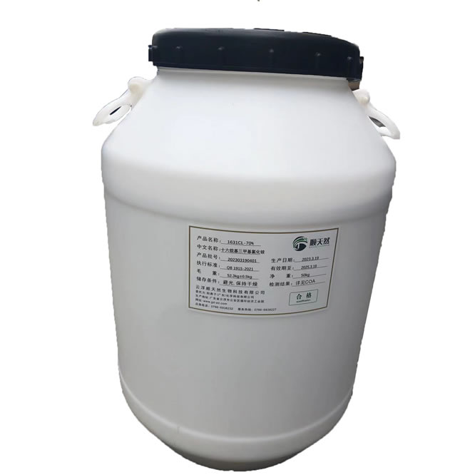 16/18 烷基二(èr)甲基叔胺與(yǔ)氯甲烷通過(guo)特殊工藝合(he)成的高品質(zhi)陽離子表面(miàn)活性劑...